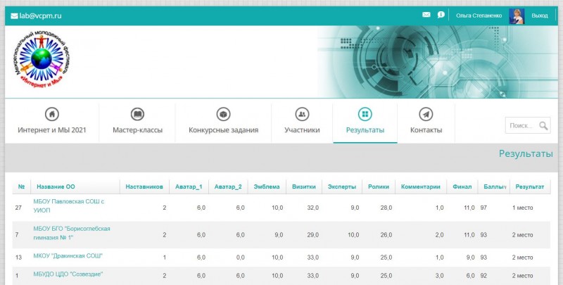 • 1 тур (виртуальный) – тур знакомства предполагал выполнение следующих заданий: р​​​егистрация (или проверка регистрации) на сайте ito.36edu.ru капитанов и наставников команд; подготовка для размещения аватаров наставников и аватаров-эмблем капитанов команд; основная работа – создание и размещение визитной карточки команды; знакомство и комментирование визитных карточек команд-участниц. Зарегистрировано было 60 команд-участниц.