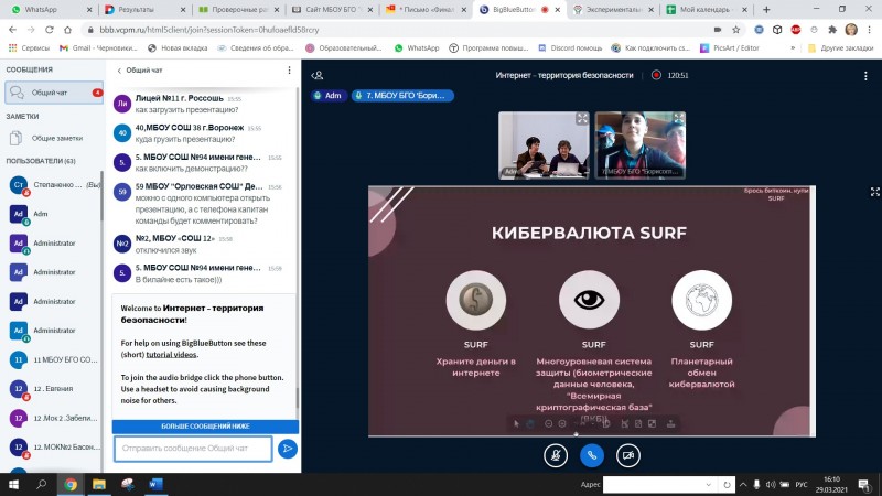 29 марта 2021 г. состоялся финал X регионального профессионального интернет-конкурса «Сторителлинг-фабрика «Интернет и Мы» в формате итогового проектного события "Интернет - территория безопасности"  в рамках региональной акции "Интернет - территория безопасности". В программе финала 36 командам-участницам предстояло выполнить конкурсное задание "Создай свои деньги" после знакомства с мастер-классом "Реальные деньги или мыльные пузыри".