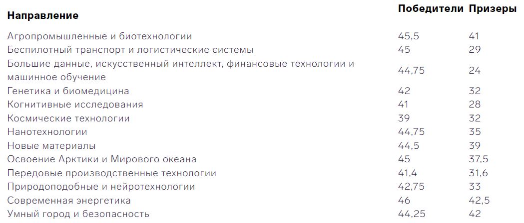 По каждому из 13 направлений итоги подводились отдельно. Граница проходных баллов составила: