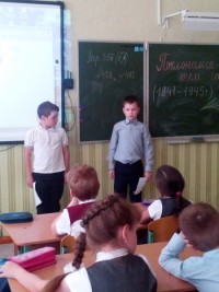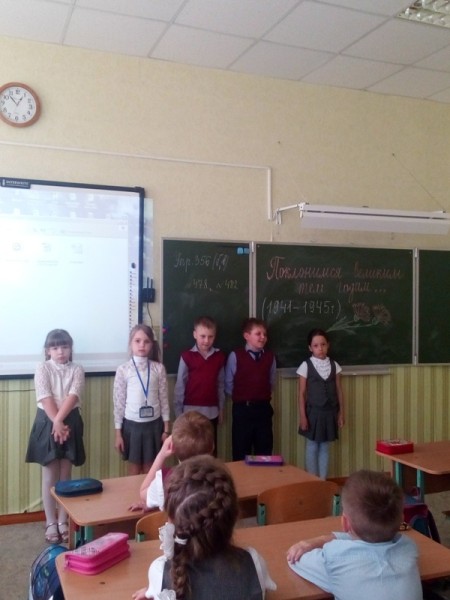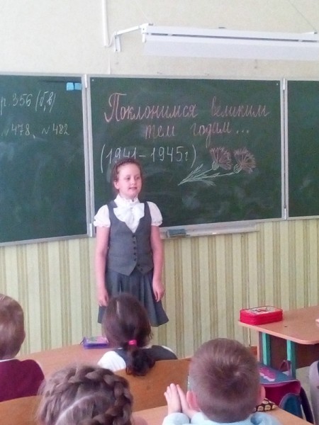 7 мая на классном часе «Поклонимся великим тем годам» ребята читали стихи о дружбе на войне, о памяти, о прекрасном Дне Победы. Особенно эмоционально ученики восприняли песню и клип Т.Гвердцители «Дети войны», а также проникновенное письмо с фронта, которое когда-то написал учитель своим ученикам.