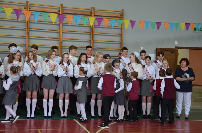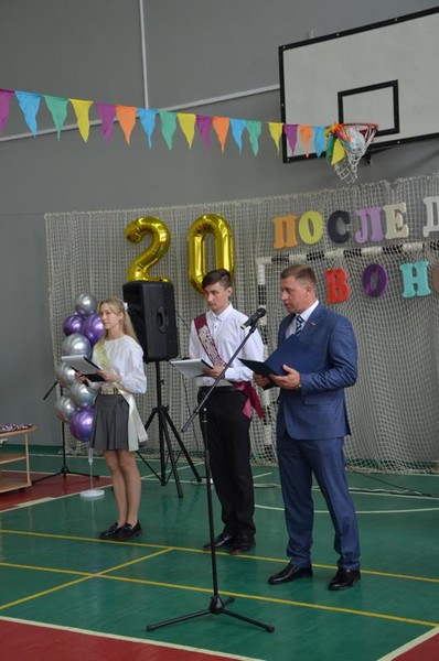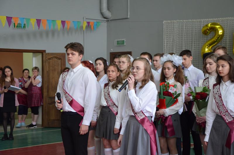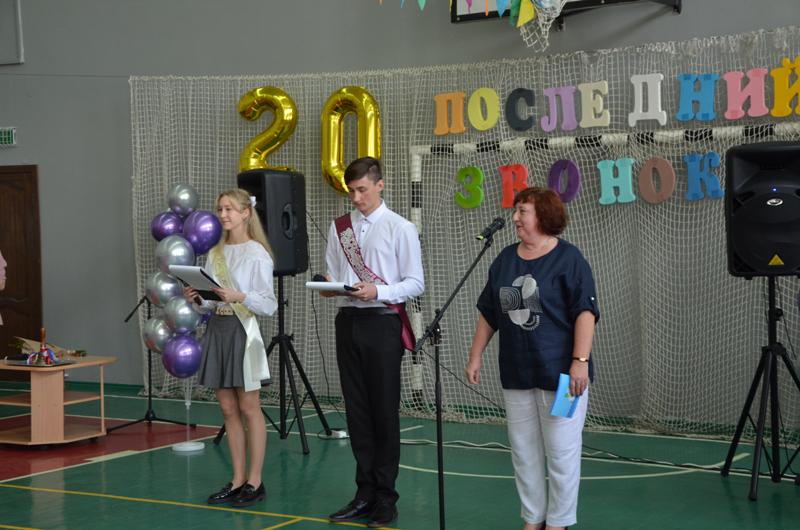 Звучали напутствия классных руководителей Солодковой Натальи Владимировны, Голомазовой Ольги Ивановны и Золотухиной Екатерины Ивановны, которые за столько лет, проведенных в школе, стали почти родными, трогательные речи родителей и ответные слова не менее взволнованных выпускников. И, конечно же, наивные стихи о последнем звонке из уст самых маленьких школьников, с некоторой завистью смотревших на выпускников, кажущихся такими взрослыми и самостоятельными. Над праздничной школой льются песни о последнем звонке. Прощальный вальс исполнили выпускники 11, 9 "А" и 9 "Б"  классов и пригласили на прощальный вальс своих учителей.  И вот кульминационный момент. Выпускники 11 класса Шишова Ксения и Моторин Савелий дали последний звонок, открывая дверь во взрослую жизнь.