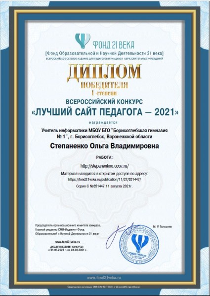 Подведены итоги Всероссийского конкурса  «Лучший сайт педагога — 2021» (https://www.fond21veka.ru/contest/lsp/)