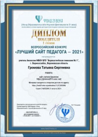 1 место - Сайт учителя биологии о том, как научить учиться Громовой Татьяны Сергеевны https://gromova2015.ucoz.net/
