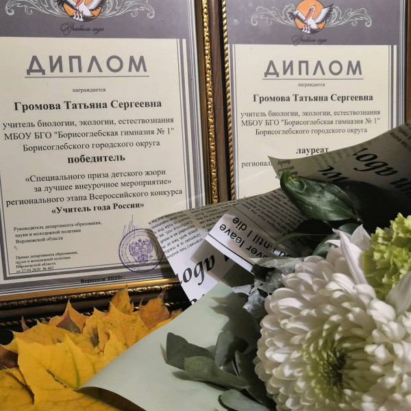 Поздравляем Громову Татьяну Сергеевну, учителя биологии МБОУ БГО "Борисоглебская гимназия № 1" - лауреата регионального этапа Всероссийского конкурса "Учитель года", победителя регионального этапа по мнению детского жюри.