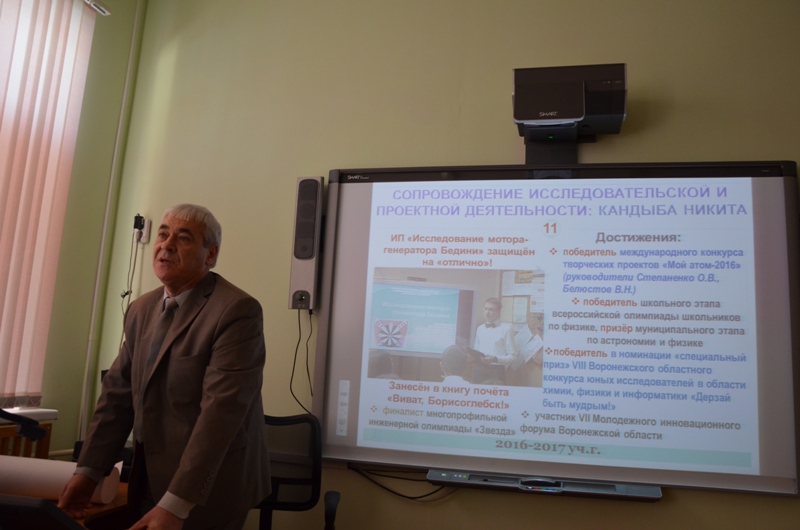 «Эволюцию» развития у обучающихся навыков проектно-исследовательской деятельности и «эволюцию достижений» показали Солодкова Н.В. (на примере проектов обучающегося Смирнова В. – от 6 до 11 класса!) и Белюстов В.Н. (на примере работ обучающегося Кандыба Н. – от 7 до 11 класса!). В заключение педагоги рассказали об образовательном центре «Сириус» (г. Сочи), где им удалось побывать и где по-настоящему выращивают юных ученых!
