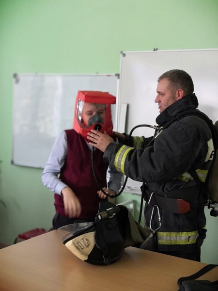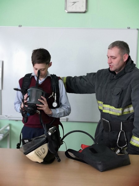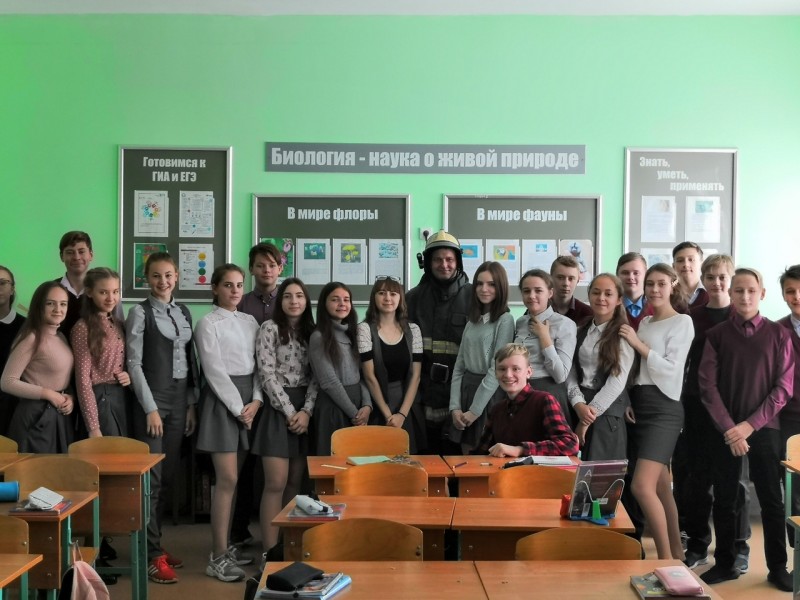 В 8 "Б" и 8 "А" классах в рамках Всероссийского открытого урока  "Спасатели" портала ПроеКТОрия  прошел урок ОБЖ (учитель Громова Т.С.). Гимназисты из 8-х классов познакомились с профессионалами, которые каждый день спасают жизни людей. Важность правил пожарной безопасности знают все, но не все могут применять на практике! Гимназисты разобрали все правила на примере, примерили каску, узнали что все снаряжение весит около 50 кг! Все это рассказал Аксёнов Сергей Владимирович, пожарный ПСЧ №20. Он рассказал о физической подготовке, об обучении пожарных. Многие ребята заинтересовались профессией пожарного.