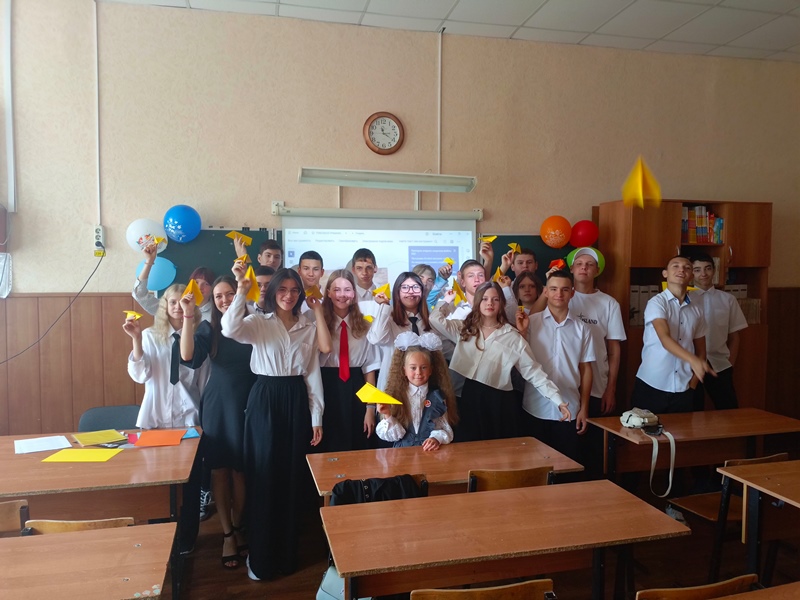 В завершение урока ребята вместе с советником директора по воспитанию Карагулаковой А.Х. присоединились к акции "Самолетик будущего". Ученики свернули из бумаги самолетики, написав на них напутственные слова первоклассникам.