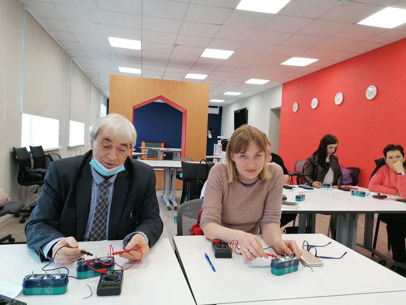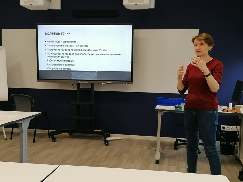 14 апреля в здании центрального офиса ВЦПМ прошло очередное мероприятие – практикумы для учителей физики, химии и биологии по направлению «Работа педагога по олимпиадной подготовке учащихся». Мастер-класс «Основы практической олимпиадной подготовки по физике» провела начальник отдела дополнительного образования, педагог дополнительного образования по направлению «Физика» регионального центра выявления, поддержки и развития способностей и талантов у детей и молодежи «Орион» Воронина Татьяна Валерьевна. Участники площадки ознакомились с видами олимпиад, особенностями и «болевыми» точками при подготовке к региональному и заключительному этапам Всероссийской олимпиады школьников, на практике освоили экспериментальную часть олимпиадных заданий.