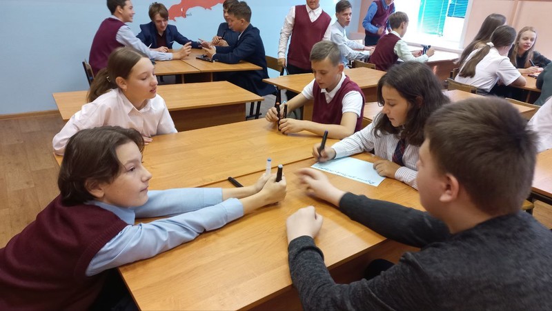 28 сентября в 7 "А" классе состоялось 4-е занятие внеурочной деятельности "Россия - мои горизонты". В этот раз гимназисты погрузились в изучение "Системы образования в России". - Для детей подготовлены интересные, интерактивные задания, которые дополняют друг друга. Ребята подробно познакомились с каждым видом образования и смогли поделиться с одноклассниками своими планами о будущей профессии, - Т.С. Громова, классный руководитель 7 "А" класса. - Я поделился с одноклассниками тем что мне увлекает, куда я иду с большим удовольствием, там моя команда, танцевальная команда! Я посещаю занятия дополнительного образования на базе нашей школу уже третий год. Руководитель нашего объединения, Игорь Владимирович, всегда нас поддерживает, на этот год у нас большие планы, - ученик 7 "А" класса Арсений Галлямов.