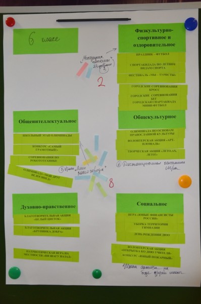 Состоялась работа по группам, где классные руководители познакомили участников семинара с новой формой мониторинга. Участниками были предложены совместные мероприятия в рамках сетевого взаимодействия по направлениям внеурочной деятельности. Путем голосования выбраны три идеи, наиболее интересные для  сетевых партнеров ,и намечены сроки их реализации.