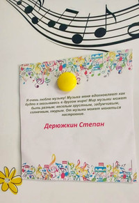 Об этом воспитанники студии ранее писали в своих сочинениях. Ведь и в шелесте листьев, и в дуновении ветерка, и в соловьиных трелях...всюду звучит музыка!