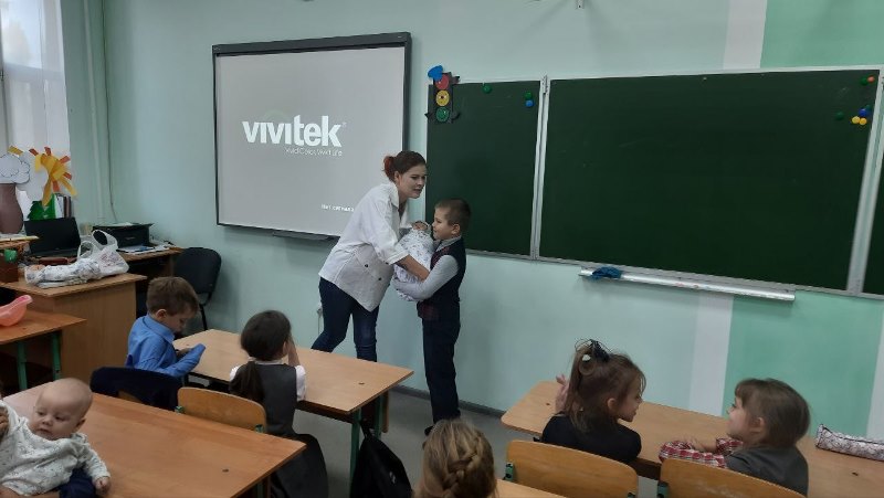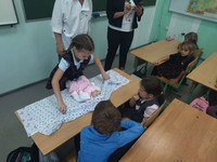 О своей любимой профессии «Акушерка» пришла рассказать ребятам мама Влады Ибраимовой - Д.Е. Ибраимова. Работа акушерки отличается от других медицинских специальностей в том, что она имеет дело не с больным, а со здоровым человеком. Именно поэтому она не только должна обладать четкими знаниями, но и быть чуткой, тактичной, способной быстро принимать верные решения. Дарья Евгеньевна рассказала, как измеряют рост, вес ребенка после рождения, продемонстрировала правила ухода за малышом. В конце занятия девочки учились пеленать малыша-куклу и правильно держать ее на руках. А мальчики пробовали качать малыша-куклу в люльке-переноске и сделали вывод: что надо быть сильным, так как вес ребенка и люльки тяжеловат. Ребята поблагодарили маму Влады за интересны й и познавательный рассказ о своей профессии.