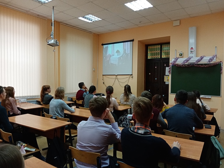 В рамках реализации плана мероприятий федерального проекта «Патриотическое воспитание граждан Российской Федерации» национального проекта «Образование» 6 декабря в 8 классе (классный руководитель Золотухина Е.И.) был проведен классный час "Герои Отечества: кто они?", приуроченный ко Дню Неизвестного солдата и Дню Героев Отечества. Цель проведения классного часа – создание условий для развития у обучающихся ценностной ориентации, формирования российской гражданской идентичности, патриотизма, уважения к Отечеству, чувства ответственности и долга перед Родиной. Обучающиеся посмотрели и обсудили документальный фильм «Фронт-36», который снят на основе работ победителей конкурса видеороликов и конкурса исторической реконструкции в фотографии.