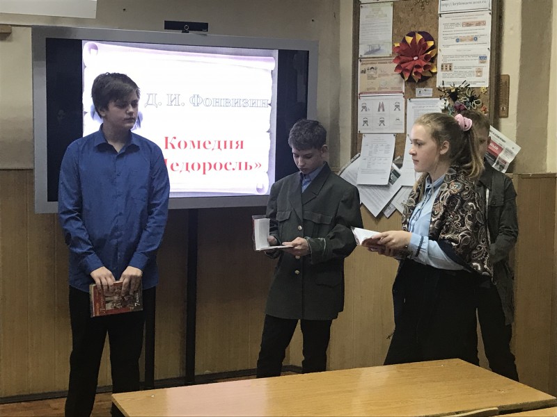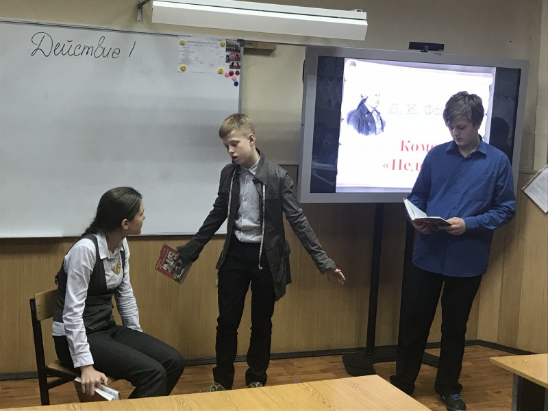 Последняя учебная неделя в 1-й четверти выдалась нелёгкой... Контрольные, зачёты, итоговые отметки... Но в кабинете литературы №11 (учитель Крылова Э.В.) царила совсем другая атмосфера: целых 2 недели гимназисты 7 "А" класса самостоятельно готовились к творческому зачёту по теме "Комедия Д.И.Фонвизина "Недоросль"". И вот время театрального действия настало! Ребята самостоятельно поделились на творческие группы и представили на суд зрителей одно из пяти действий комедии. Вот как это было: