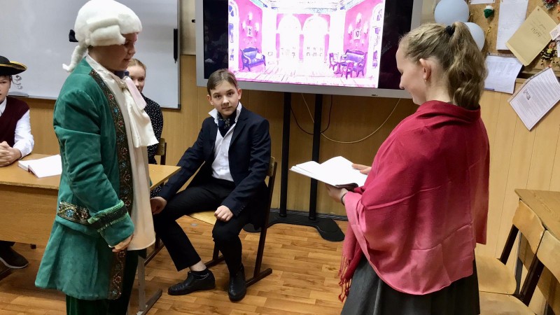 Ровно за неделю до события класс поделился на 5 групп, каждая из которых подготовила театральную постановку одного из пяти действий великой фонвизинской комедии на все времена «Недоросль».  Семиклассники были «сами себе режиссёрами», актёрами, сценаристами, костюмерами, декораторами, но при этом ещё проявили командный дух (не выучил свою роль – подвёл товарища!).