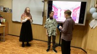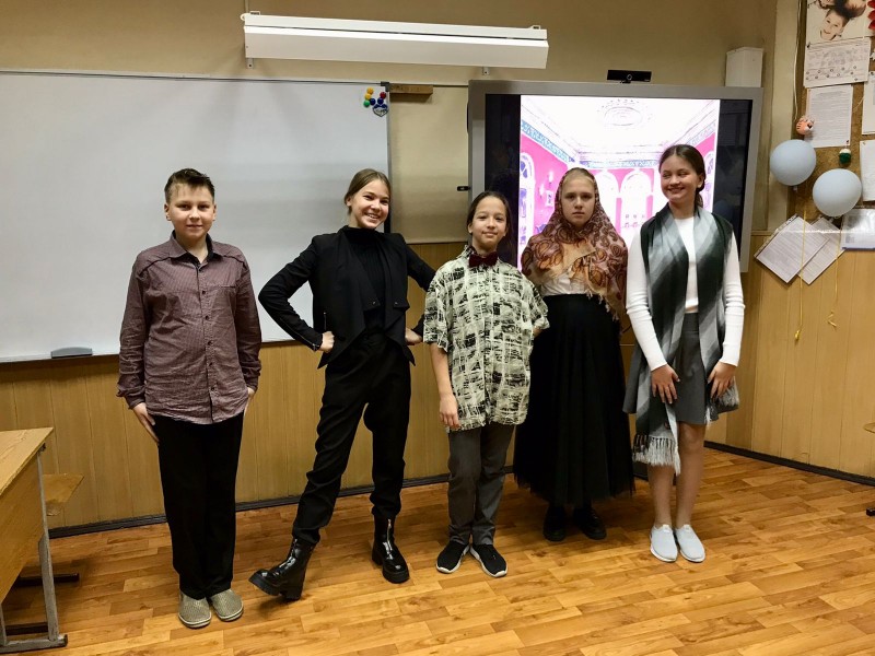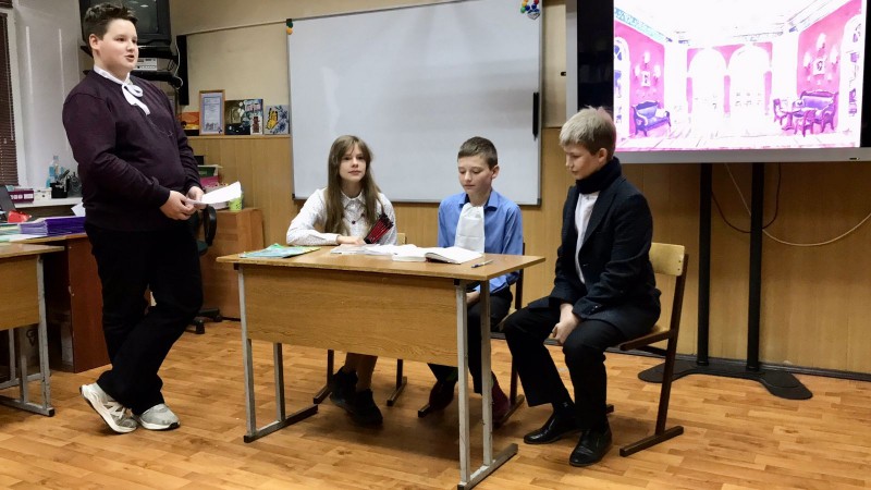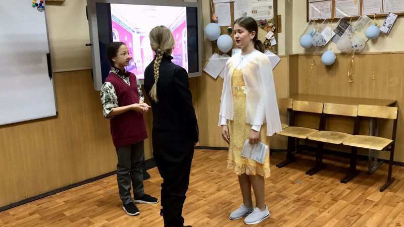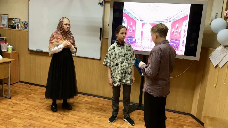 Яркая игра юных дарований в кабинете №11 перемежалась бурными аплодисментами, реплики актёров перекликались с восторженным комментарием учителя литературы. Уверена, что этот день останется яркой страничкой в школьной биографии ребят!