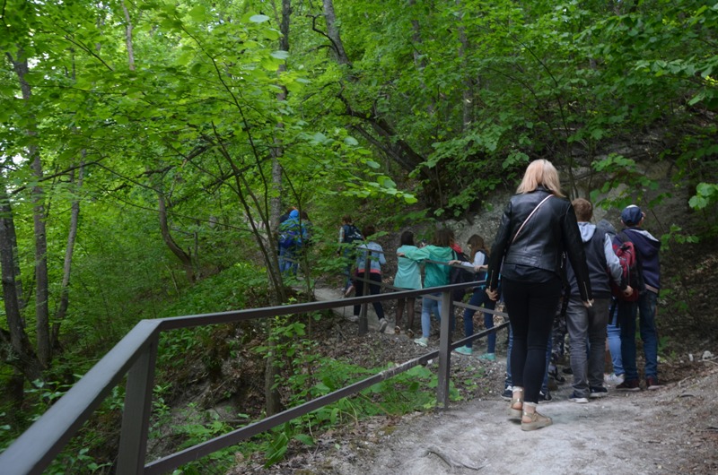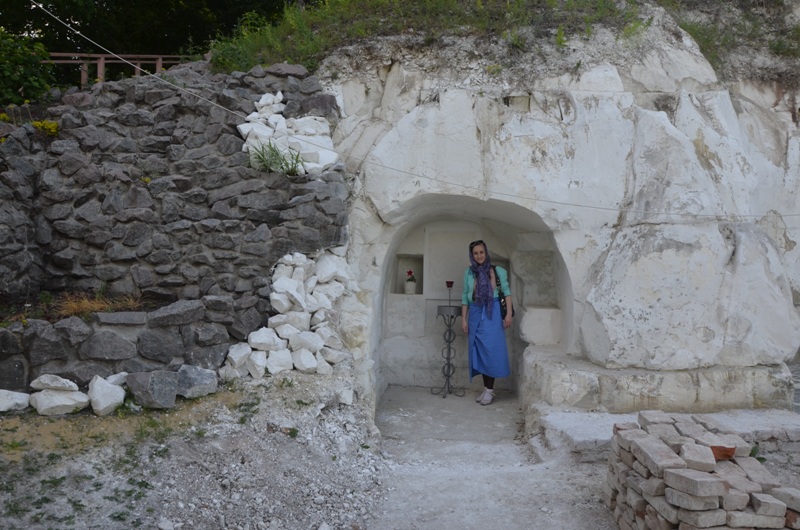 После исследования лабиринта меловых пещер путешественники поднялись на гору и посетили верхний храм Белогорского Воскресенского мужского монастыря.