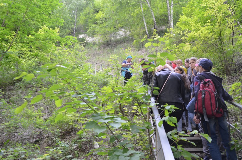 Преодолев крутой подъем в гору по лестнице (90 м) и лесной тропинке, путешественники оказались у входа в самую большую по протяженности ходов искусственно вырытую культовую пещеру в центральной части России. Протяженность пещер Белогорского Воскресенского монастыря более 2 км, а глубина более 75 м. Множество легенд и сказаний окутывает это таинственное место. В настоящее время сохранились незасыпанными около 900 метров. Но и это поражает воображение: пещеры с их внутренними двумя храмами (верхний – Александра Невского, нижний – Святого духа), кельями простираются вниз на глубину 16-этажного дома!