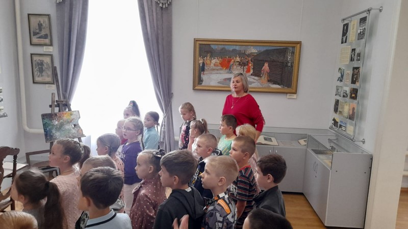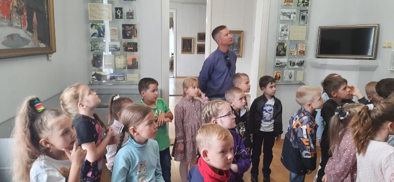 3 сентября в рамках акции «Тропинками родного края»" обучающиеся 1 класса (кл. руководитель Негадова О.П. и педагог ДО Коломоец И.В.)  посетили картинную галерею им. П.И. Шолохова. Это была первая встреча с музеем  для первоклассников. Прежде чем осуществить выход на выставку, была проведена с ребятами подготовительная работа: раскрыта цель посещения, знакомство с содержанием выставки, правилами поведения при посещении выставки. Такая работа была, своего рода, эмоциональным настроем для посещения галереи. Ребята с удовольствием слушали экскурсовода. Они узнали  об истории создания галереи, побывали в залах галереи и познакомились с произведениями искусства известных художников г. Борисоглебска.
