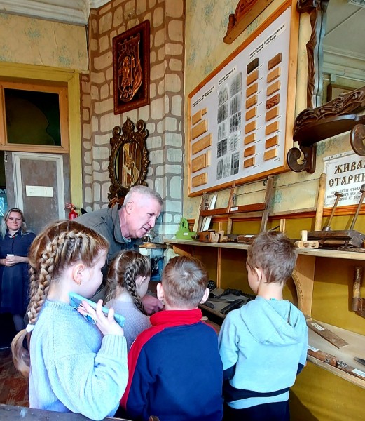 Ребята посмотрели выставку работ Бобровского Дома ремёсел, узнали о  работе творческих кружков, познакомились с русскими народными промыслами.Больше всего и мальчиков, и девочек заинтересовали инструменты для резьбы по дереву. Об их видах ребятам  увлекательно   рассказал  руководитель кружка "Резьба по дереву"  Александр Николаевич Долгирев. Ко всеобщей радости, инструменты можно было подержать в руках. Гончарный круг и изделия из глины вызвали у ребят не меньший интерес, - ведь все  они хранят тепло рук мастера, которые их лепили.