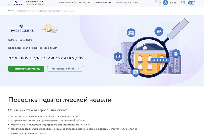 Главная » 2023 » Октябрь » 11 » Всероссийская онлайн-конференция «Большая педагогическая неделя»