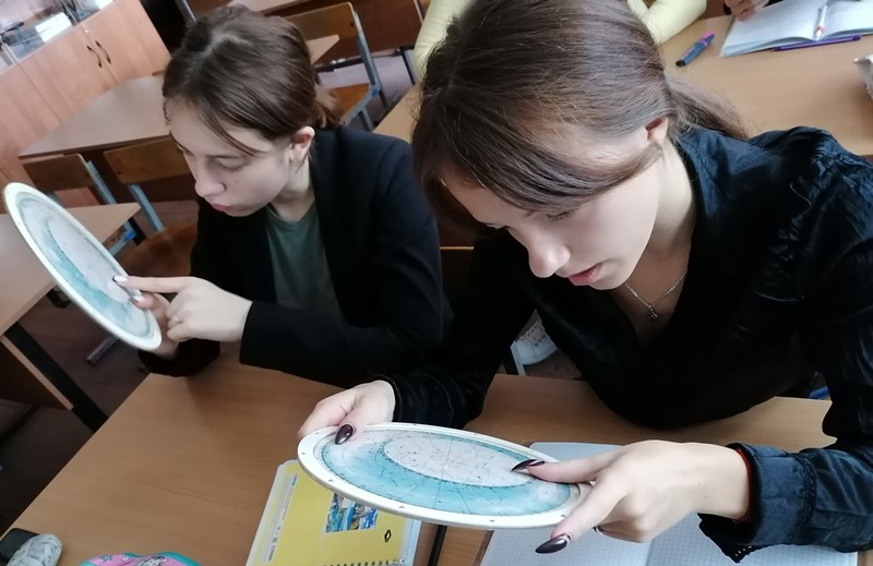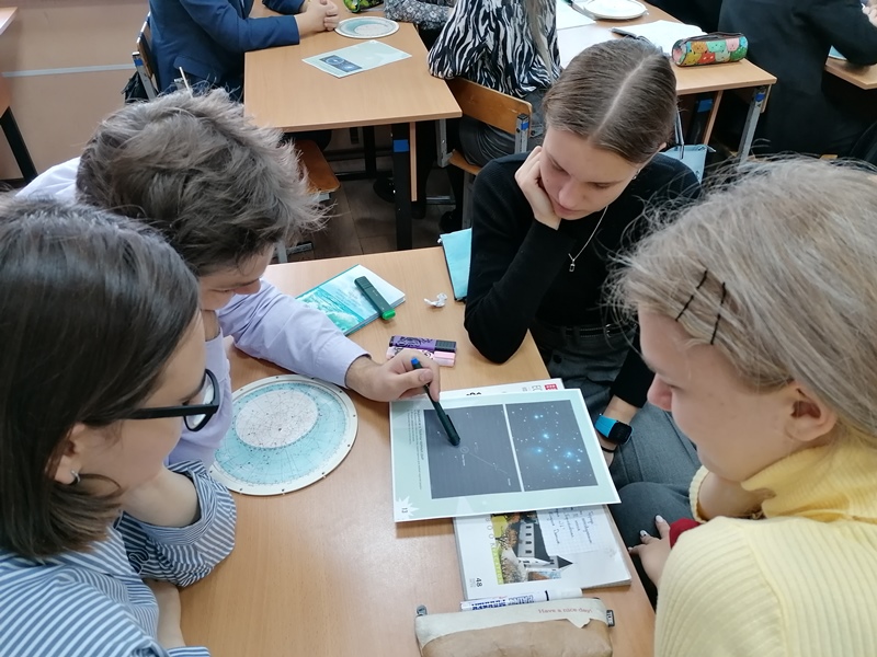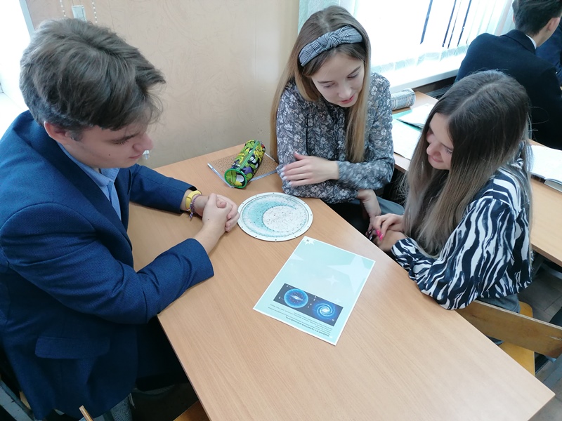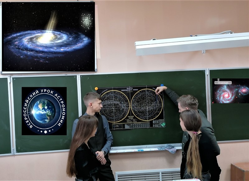 Отдельному направлению – галактической астрономии, изучающей галактики, звёздные скопления и космическое пространство, одиннадцатиклассники уделили на уроке особое внимание. После просмотра видеоролика о нашей «большой родине» – Млечном Пути и работы со звёздной картой, они на специальных листах ответили на интересные вопросы, связанные с современными данными об эволюции Вселенной.