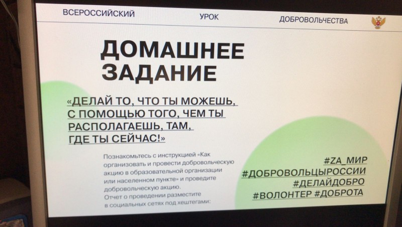 Всероссийский урок Добровольчества, или Добро начинается с меня
