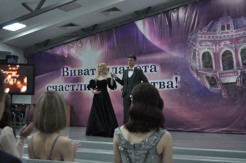 И вот наступает самый торжественный момент - вручение аттестатов, грамот и благодарностей.  Первыми на сцену поднялись 6 выпускников 2023 года, которые по праву заслужили гордое звание отличника. Кошелева Валерия, Кутепова Полина, Мицкевич Артём, Негадов Данила, Сёмушкина Софья и Шишова Ксения свои аттестаты с отличием и медали «За особые успехи в учении» получили на торжественном приеме в администрации БГО. Там же 5 выпускников были отмечены знаком «Надежда Борисоглебска»:  Моторин Ростислав, Моторин Савелий, Недорезова Юлия, Степаненко Алиса и Шишова Ксения.  В этот вечер каждая семья получила благодарственное письмо за хорошее воспитание сына или дочери и портфолио выпускника с "веером" грамот, которые ребята заработали на протяжении двух последних лет в области образования, спорта, молодёжной политики. Эстафету поздравлений в адрес выпускников сначала приняла классный руководитель 11 класса Наталия Владимировна Солодкова, затем представитель родительской общественности одиннадцатиклассников Архипова Марина Валерьевна. Их пожелания тоже не были оригинальными: счастья, любви, признания в будущей профессии. Но именно это и делает человека по-настоящему счастливым!