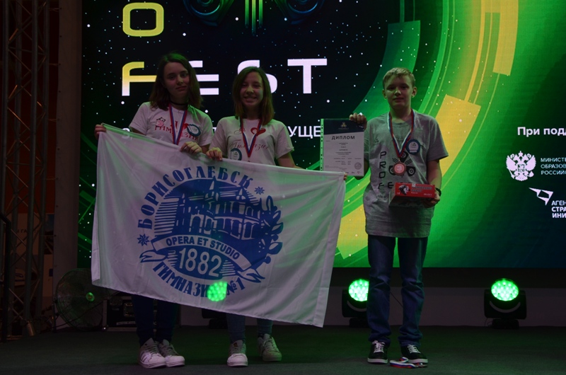 Команда «Креативные гости из будущего» - гимназисты: Мячин Кирилл, Гвоздь Дмитрий, Степаненко Алиса и ребята из Нижнего Новгорода: Бедняков Евгений и Варнаков Игорь стала бронзовыми призерами фестиваля, заняв 3 место! Молодцы! Браво!