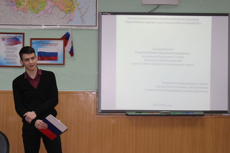 12.12.2017 г. в МБОУ БГО «Борисоглебская гимназия №1» продолжилась защита индивидуальных проектов обучающихся 11 класса. Работы защитили: