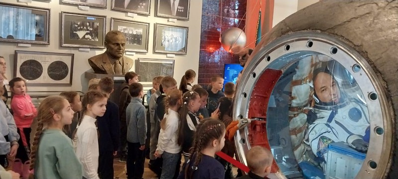 Нагулявшись на свежем воздухе второклассники с родителями прибыли в музейно-выставочный центр. Родители посетили музейную экспозицию «Во славу Родины», посвященной 65-летию Великой Победы, а ребята экспозицию «Тамбовские авиационно-космические орбиты». Дети увидели космическое оборудование, личные вещи космонавтов, скафандры и скульптурные портреты, материалы космических исследований, экспонаты, рассказывающие об одиннадцати советских и российских космонавтах, многих ученых, в разные годы проживавших на Тамбовской земле.